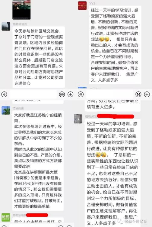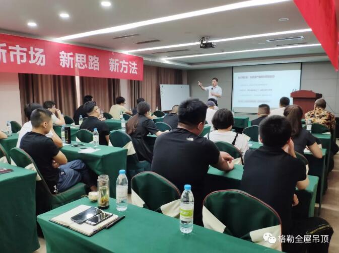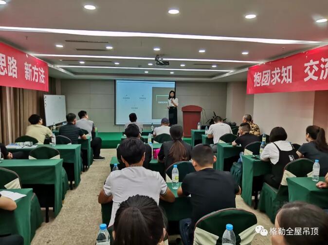 "我們唯有加速奔跑,才能存活在這個時代。"翌日,格勒吊頂營銷戰(zhàn)略合作伙伴目思營銷丁總,以“頂墻行業(yè)實戰(zhàn)培訓”、“經(jīng)銷商交流機制”為主題通報,在品牌建設、宣傳推廣、渠道建設、店面展示、建立制度、規(guī)范終端等問題做了強化培訓。其深厚的實戰(zhàn)經(jīng)驗及出彩的解說讓在場家人茅塞頓開。